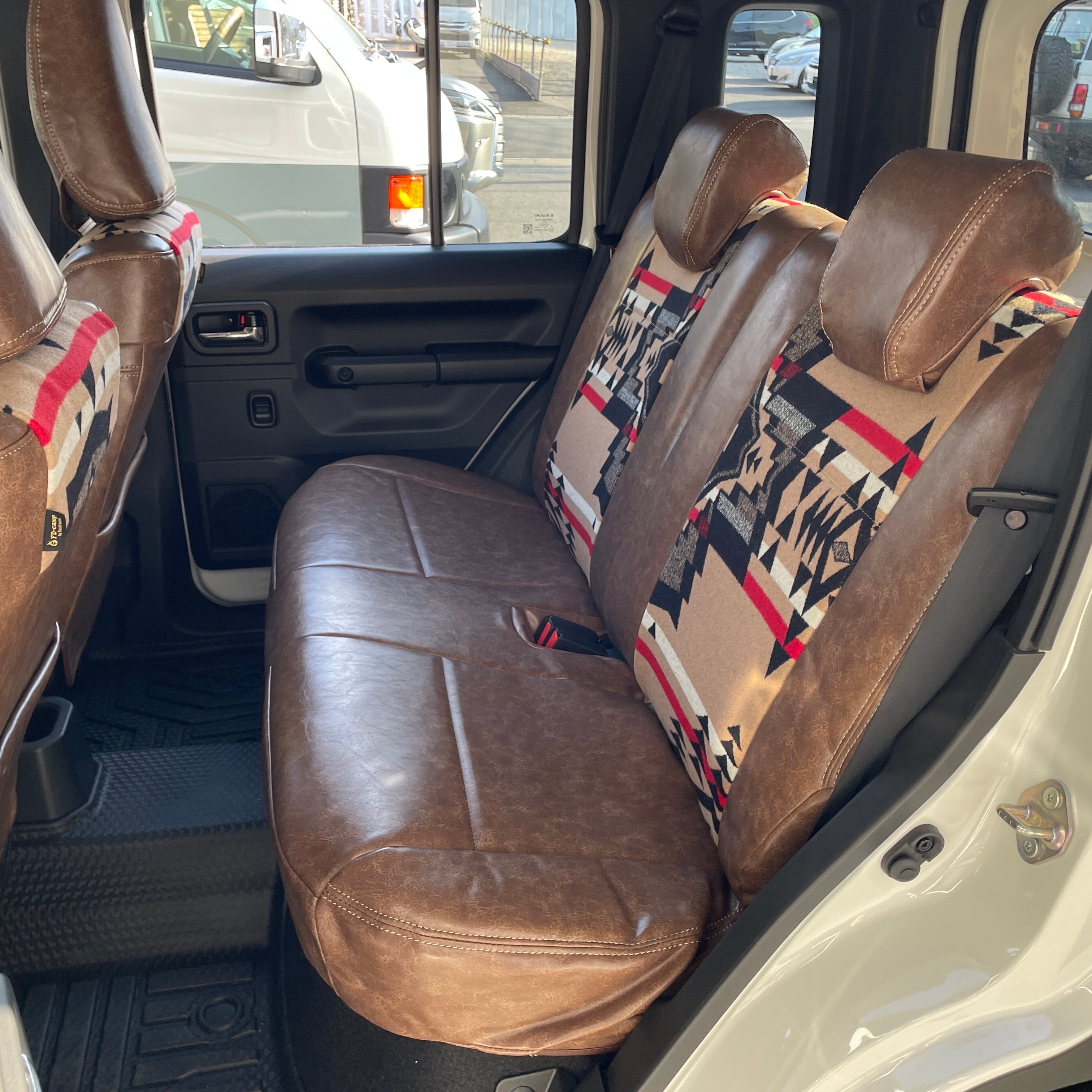 新型ジムニー ノマド JC74 用 ペンドルトンコラボシートカバー 【ヴィンテージ調ブラウンレザー×オーバーオール ベージュ】