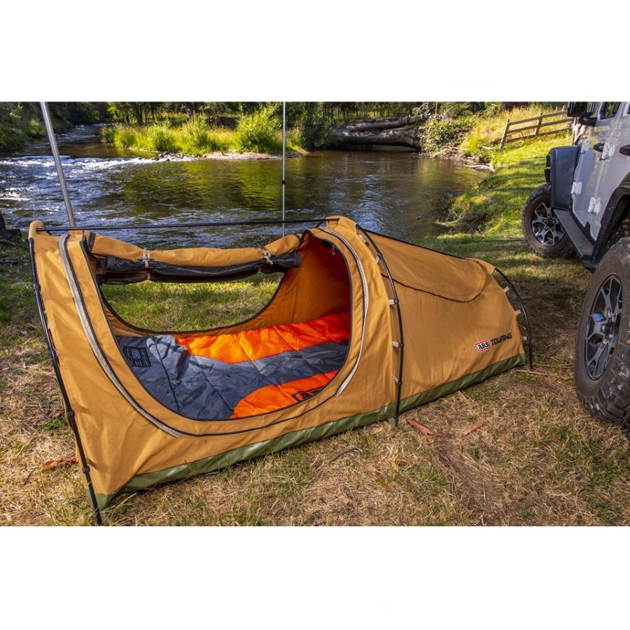 ARB コンパクトスリーピングバッグは、春・夏・秋のキャンプやアウトドアで活躍する3シーズン用寝袋です。2層構造の中空高機能ファイバーを採用し、優れた保温性と快適性を両立。さらに、肌触りの良い起毛マイクロファイバー裏地(ARBロゴ入り)と、熱を逃がさず蒸れにくいAlu-Techライナーを組み合わせ、快適な睡眠をサポートします。