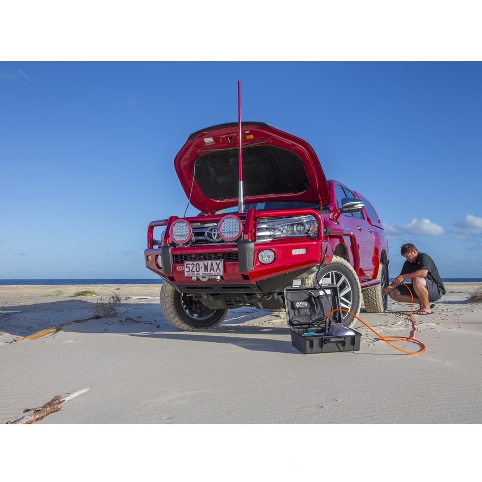 持ち運び可能なコンプレッサーとしてストレスなく快適にお使いいただける充分なパワーと膨張速度を持つARB ポータブルツインコンプレッサーは、静かな作動音と長期間にわたる耐久性のために、軽量で高品質の素材で構成されています。