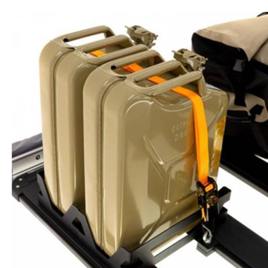 ホルダーごとにジェリー缶2個を簡単に取り付けることができます