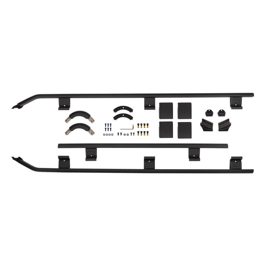 フルレールとトレードレールの中間、3/4 レール、およびオプションのローラーキットにより、大きくて扱いにくいアイテムを後方から簡単に積み込むことができます。 テントの幅に応じて、後部折りたたみ式ルーフトップ テント用にも設計されています。